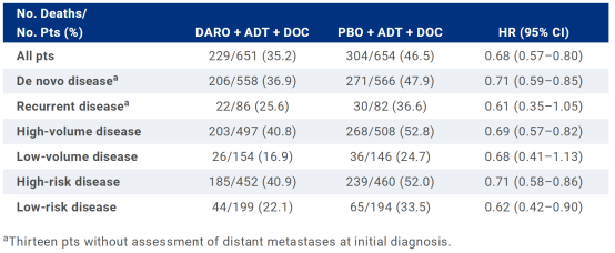 Efficacy and safety of darolutamide(DARO)in combination with androgen-deprivation therapy(ADT)and docetaxel(DOC)by disease volume and disease risk in the phase 3 ARASENS study.(摘要号:15)