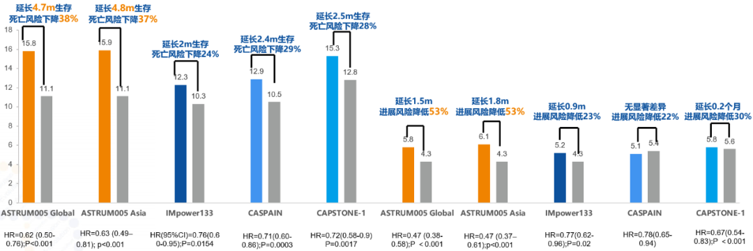 另外从入组患者PS评分来看,ASTRUM-005研究和CAPSTONE-1研究均入组超过80%PS评分1的患者,而IMpower133研究和CASPIAN研究入组PS评分1的患者均不超过65%。