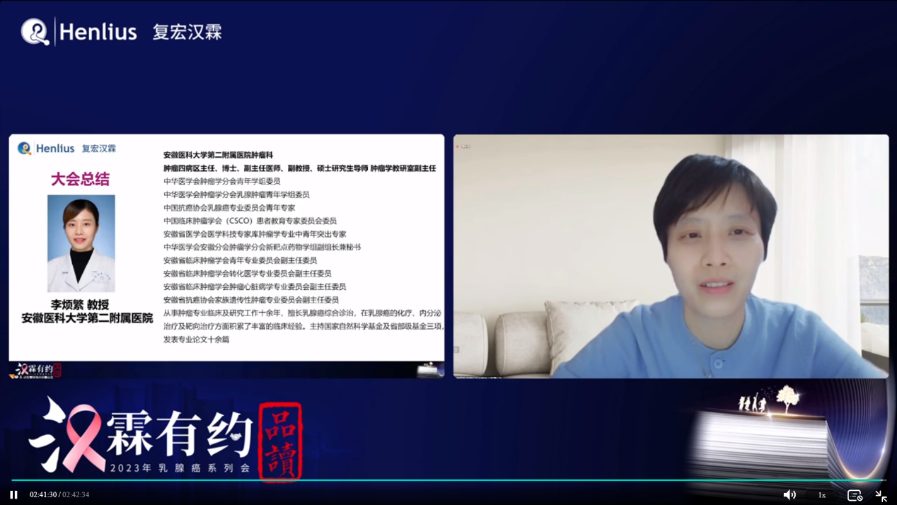 最后徐莹莹教授进行了大会总结,早期乳腺癌的不同亚型确实提高了疗效,但也引起了不少困惑。目前针对HER2+乳腺癌的升降阶梯讨论较多,升阶梯路径较为明确,即新辅后双靶双化疗non-pCR患者的T-DM1强化及后续的T-DXd强化;但经过新辅助治疗后的高危三阳性患者,需要从分子亚型的本质进行考量。降阶梯给了新的治疗思路,但均处于探索阶段。三阴性乳腺癌的优化方案及治疗流程仍在进行,期待后续的临床应用。新辅助免疫的配伍方案、应用时间和时间仍需继续探索。大会执行主席李烦繁教授分享了参会感受,表示本次会议青委专家充分交流,带来了许多思考,期待后续会议的再次相聚。