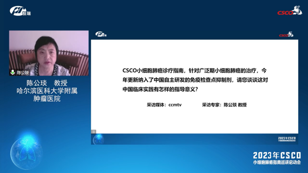 陈公琰教授谈到既往小细胞肺癌治疗进展缓慢,常借鉴非小细胞肺癌指南进行临床工作。直至2020年,CSCO小细胞肺癌指南首版发布,令人欣慰。在今年第三次修订时,新版指南纳入我国自主研发的阿得贝利单抗联合化疗作为ES-SCLC一线治疗的I级推荐,打破了既往国外药物垄断现状,力证我国自主研发的雄厚实力。值得一提的是,新版指南既接轨国际标准,也体现我国特色,可更好地服务患者,同样十分可喜可贺。
