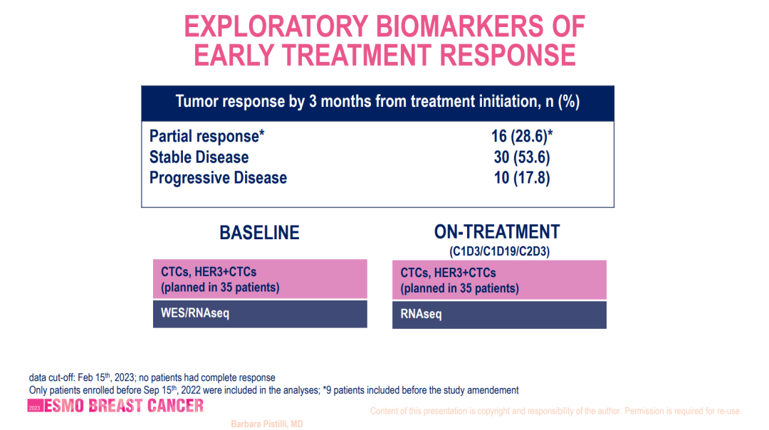 10.B.Pistilli,N.Ibrahimi,M.Lacroix-Triki,et al.A phase II study of patritumab deruxtecan(HER3-DXd),in patients(pts)with advanced breast cancer(ABC),with biomarker analysis to characterize response to therapy(ICARUS-BREAST01).ABSTRACT BOOK of the ESMO Breast Cancer,189O.2023;8(1S4):4.