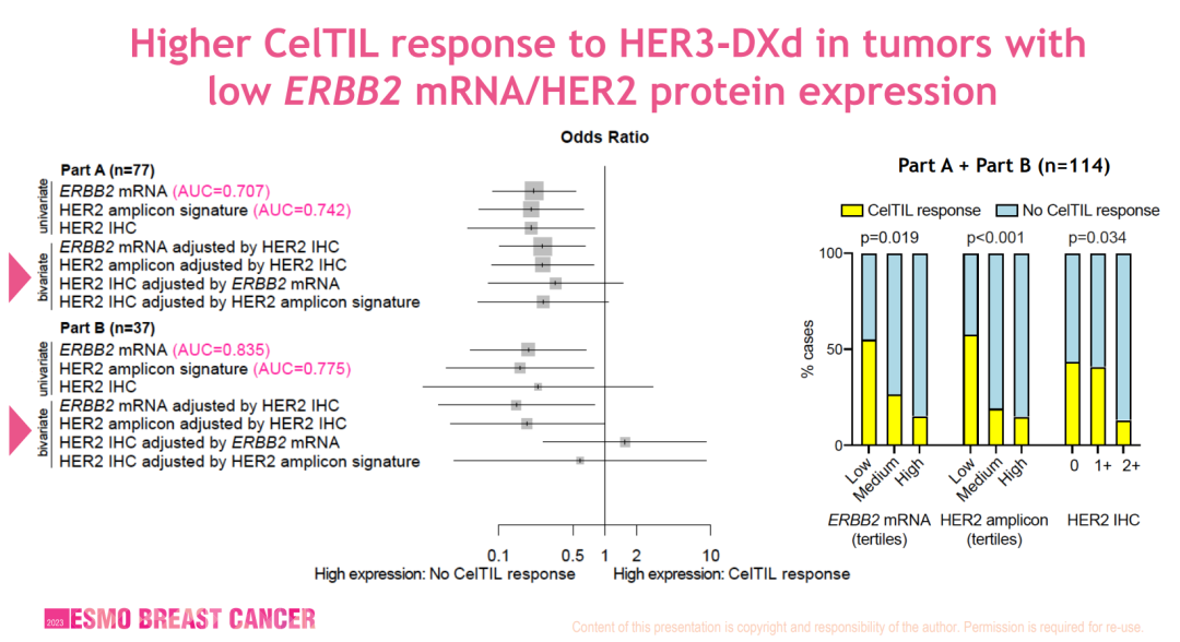 图12:对HER3-DXd的高CelTIL指数反应与低HER2 mRNA、低HER2表达相关