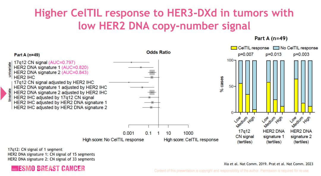 图13:对HER3-DXd的高CelTIL指数反应与低HER2 DNA拷贝数相关