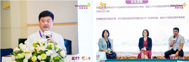 在北京大学肿瘤医院李惠平教授主持下,新疆医科大学第一附属医院郭晨明教授、苏州大学附属第一医院徐红教授围绕该主旨报告展开讨论,针对OFS应用人群的临床特征(可否对标化疗人群)、围绝经期淋巴结阳性患者的OFS考虑因素等话题分享其真知灼见。