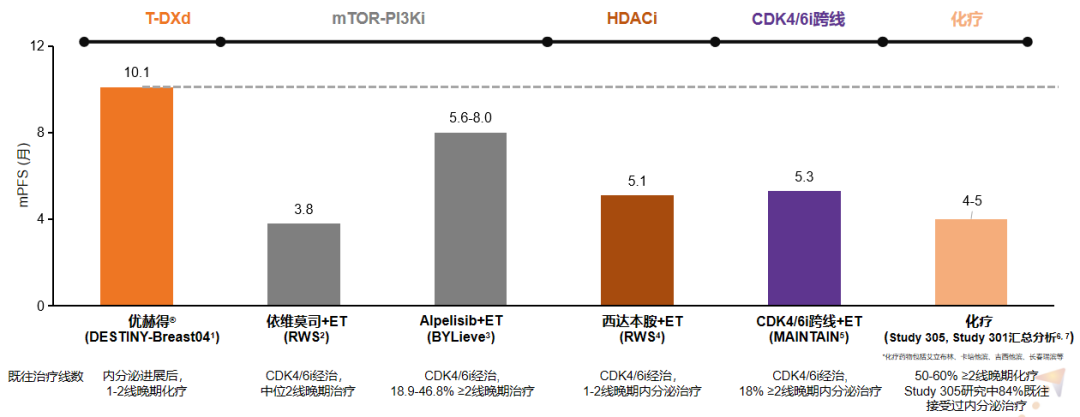 目前的研究显示,大多数内分泌联合靶向治疗中位PFS大多不超过半年,而T-DXd的中位PFS达10.1个月,中位OS也达到了近2年。将T-DXd置于优选地位,可使患者获得更长久地疾病控制、生活质量维持或改善,从而更有可能在未来接受其他新型药物治疗。