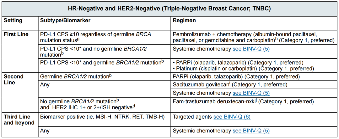 图3.NCCN指南对晚期TNBC的治疗推荐
