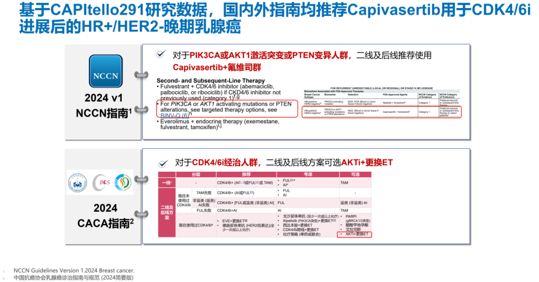 陈文艳教授强调:“在HR+/HER2-晚期乳腺癌内分泌靶向新时代,目前唯一主要纳入CDK4/6i经治人群的靶向内分泌川期CAPItello-291研究在post CDK4/6i领域循证医学证据级别高,证实了AKTi Capivasertib联合氟维司群可获得PFS双倍改善,在中国人群获益显著。”
