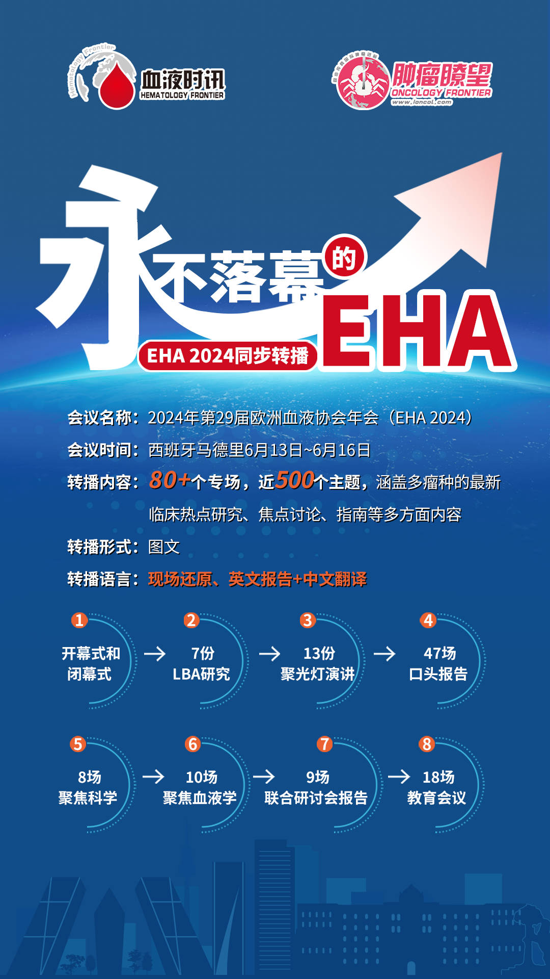 2024年欧洲血液协会年会(EHA 2024)及2023年欧洲肿瘤内科学会年会(ESMO 2023)已圆满落幕。为了持续共享可能影响未来临床实践的最新临床肿瘤学研究成果和诊疗经验,肿瘤瞭望特别推出“永不落幕的EHA”和“永不落幕的ESMO”专栏,覆盖肿瘤预防、筛查和早期诊断更新,基础科学、转化和临床肿瘤学研究的最新突破研究等多个领域,为广大临床医生奉上原汁原味的学习资料和最前沿的诊疗理念。