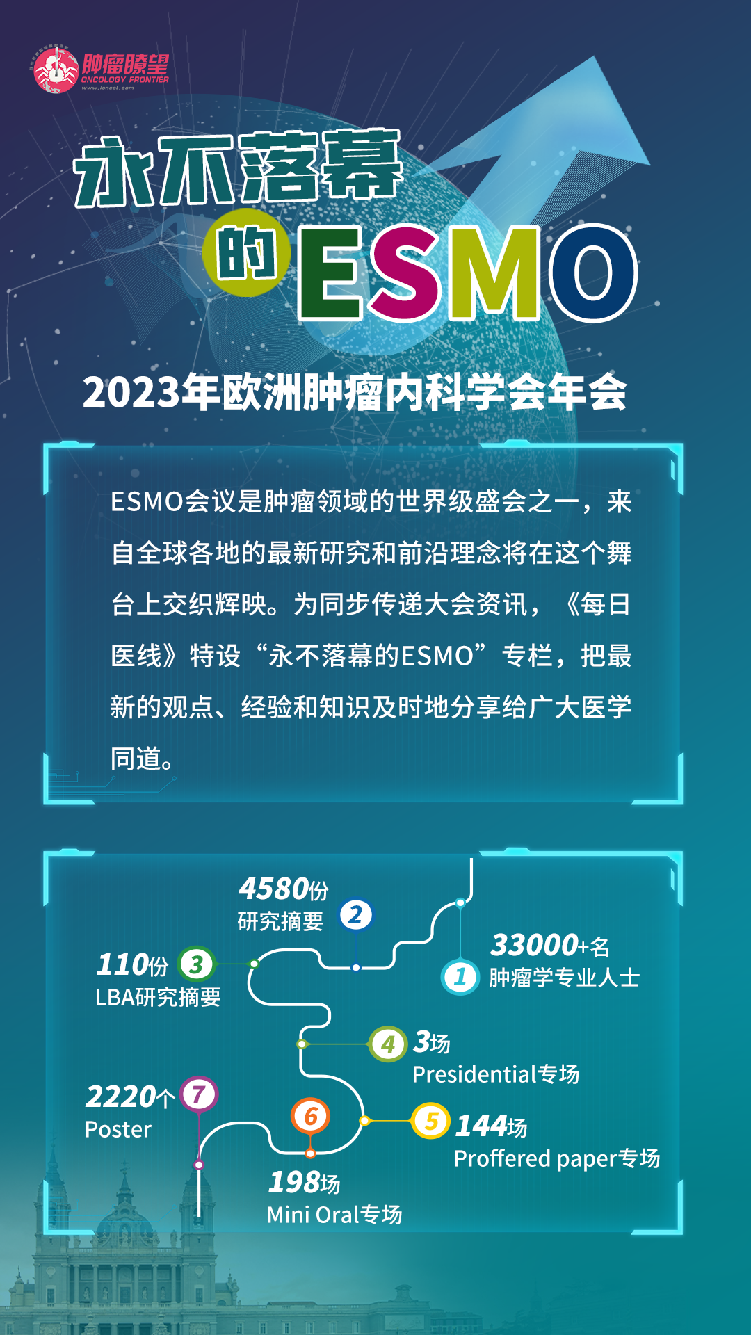 2023年欧洲肿瘤内科学会年会(ESMO 2023)于当地时间10月20日~24日在西班牙马德里盛大召开。作为肿瘤学界的年度盛典,ESMO每年都会吸引上万名世界各地的肿瘤学大咖,为全球学者提供了良好的交流平台。作为同步传真国际肿瘤进展的医学媒体,《肿瘤瞭望》每年都会对ESMO大会进行报道,为满足读者需求,使广大临床医生获得更加深入、系统、全面的前沿研究进展信息: