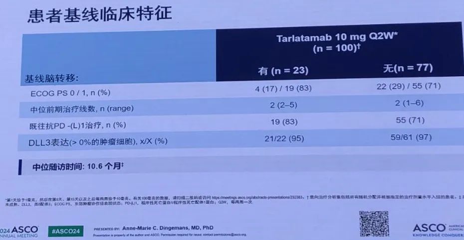 DeLLphi-301:Tarlatamab在小细胞肺癌中的II期研究一根据脑转移状态分析疗效和安全性